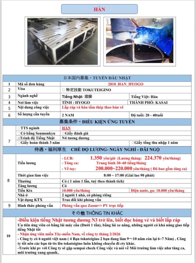 | Trình độ ngoại ngữ yêu cầu | JLPT N4 |