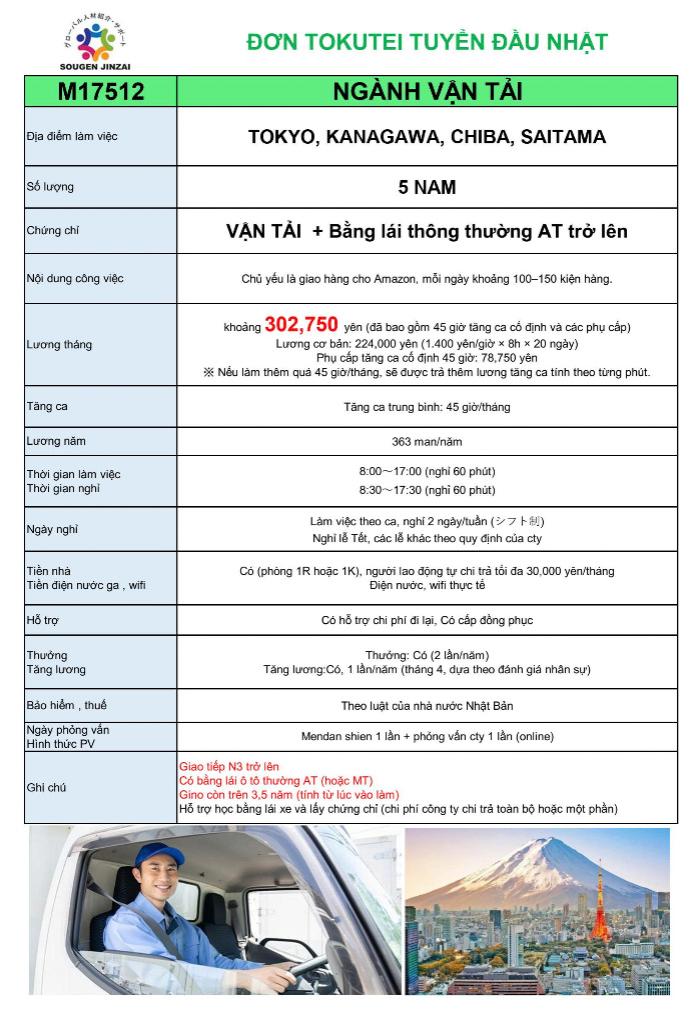| Địa điểm làm việc | Tokyo, Kanto; Kanagawa, Kanto; Chiba, Kanto; Saitama, Kanto |