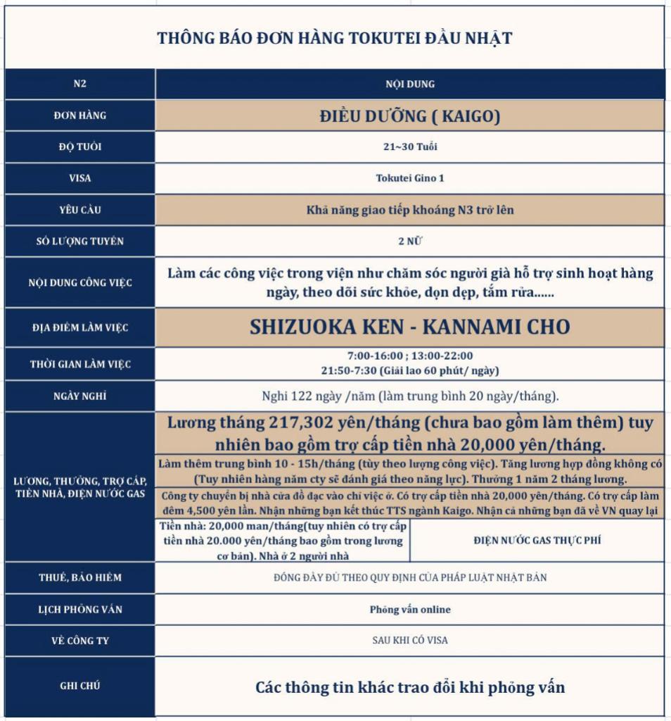 | Loại hình Visa | Tokutei đầu Nhật |