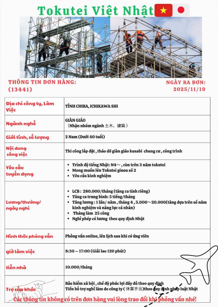 | Ngành nghề xin visa | Xây dựng tổng hợp |