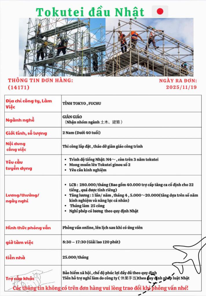 | Ngành nghề xin visa | Xây dựng tổng hợp |