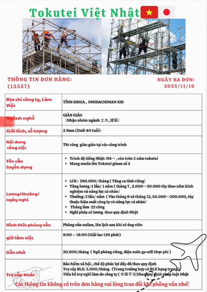 | Ngành nghề xin visa | Dựng giàn giáo |