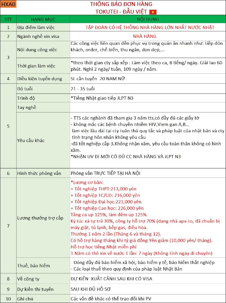 | Ngoại ngữ yêu cầu | Nhật Bản |