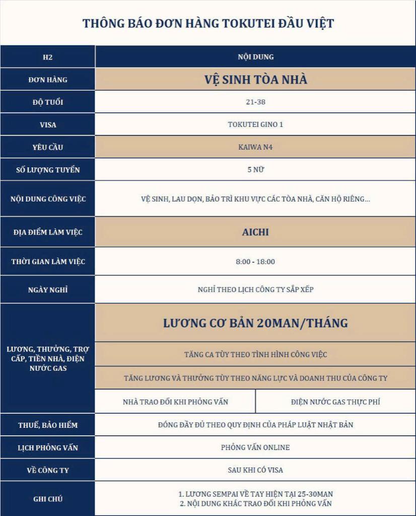 | Loại hình Visa | Tokutei đầu Việt |