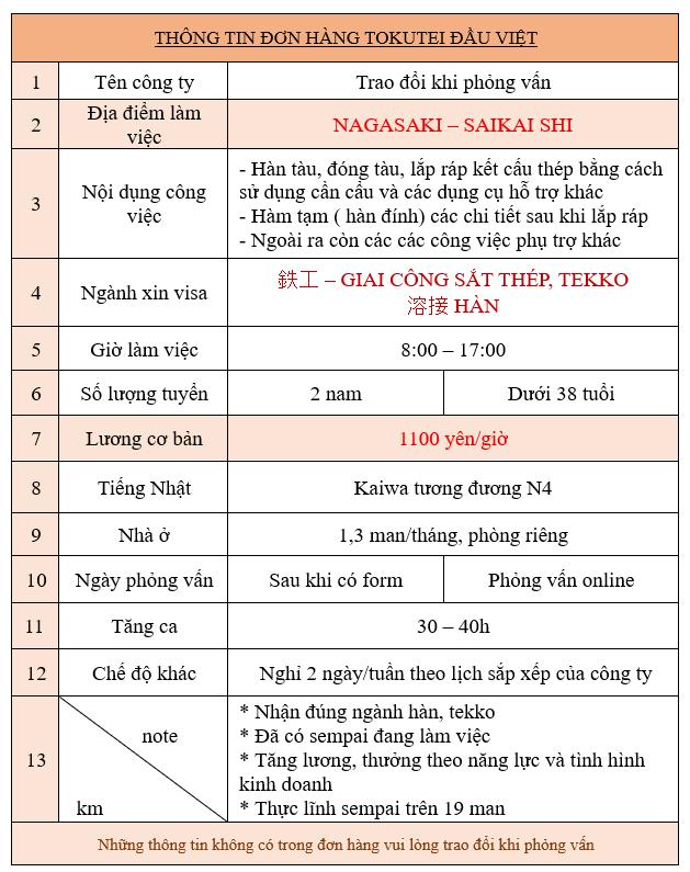 | Loại hình Visa | Tokutei đầu Việt |