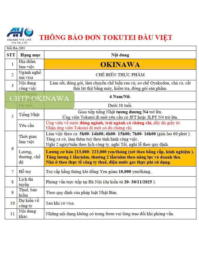 | Trình độ ngoại ngữ yêu cầu | JLPT N4 |