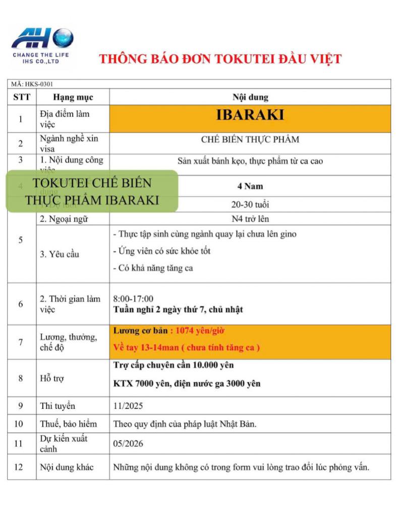 | Trình độ ngoại ngữ yêu cầu | JLPT N4 |