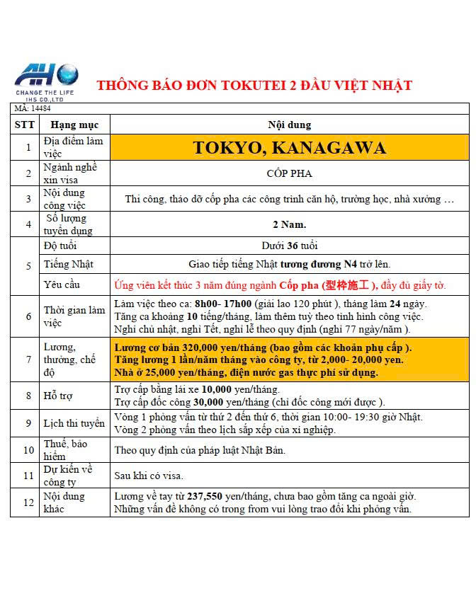 | Địa điểm làm việc | Tokyo, Kanto; Kanagawa, Kanto |