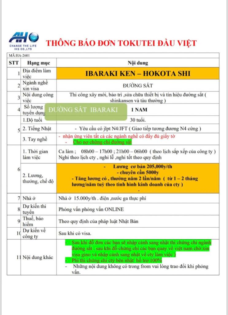 | Ngành nghề xin visa | Bảo trì đường sắt |