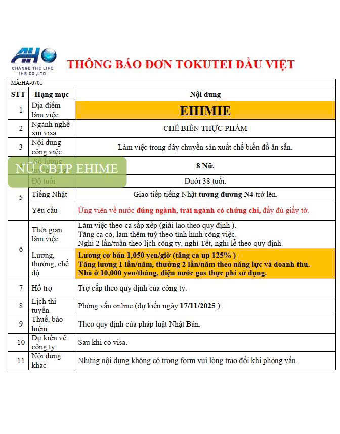 | Trình độ ngoại ngữ yêu cầu | JLPT N4 |