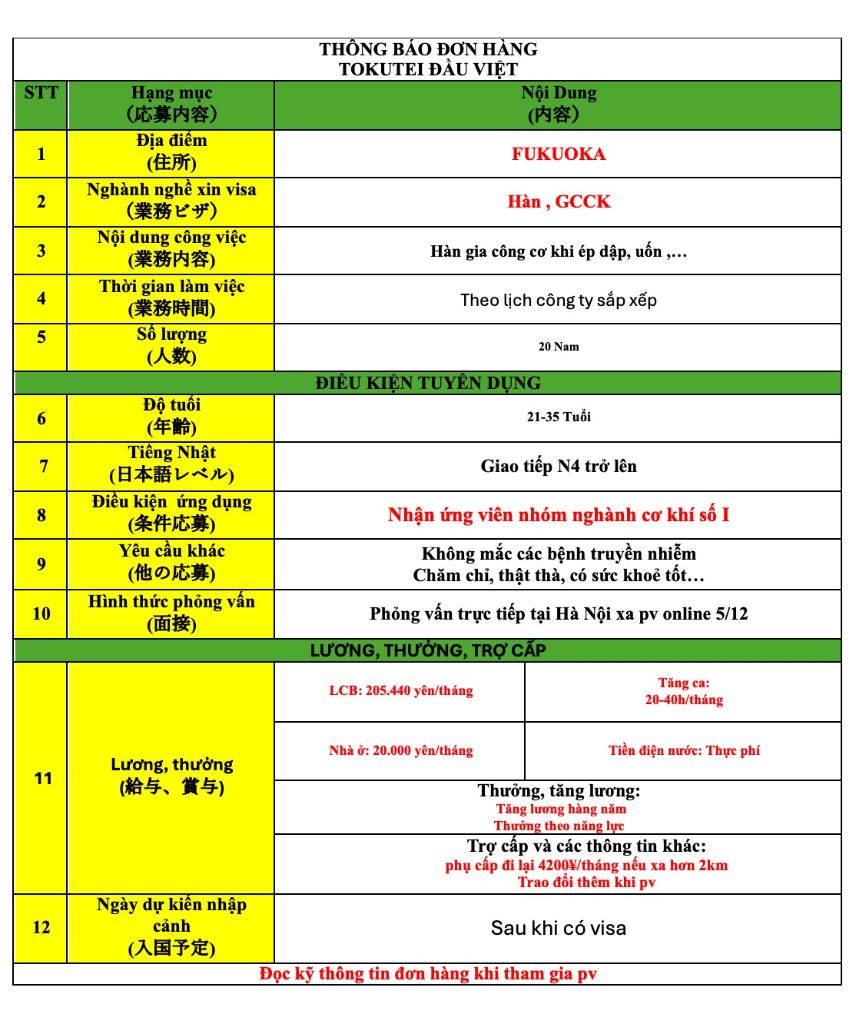 | Ngoại ngữ yêu cầu | Nhật Bản |