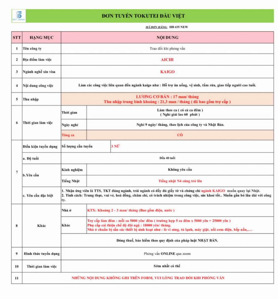 | Ngành nghề xin visa | Điều dưỡng, hộ lý |