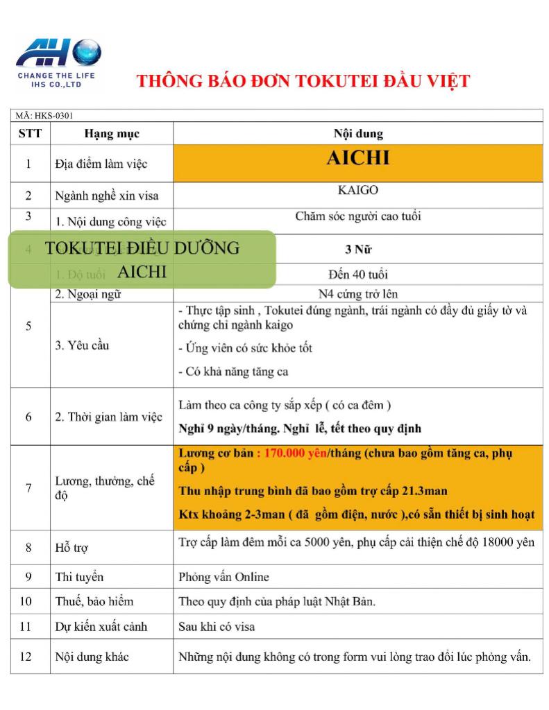 | Ngành nghề xin visa | Điều dưỡng, hộ lý |