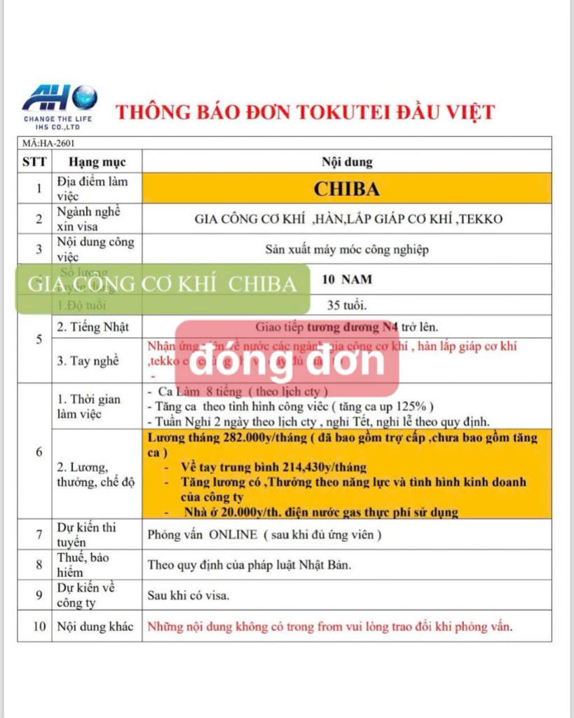 | Ngành nghề xin visa | Cơ khí |
