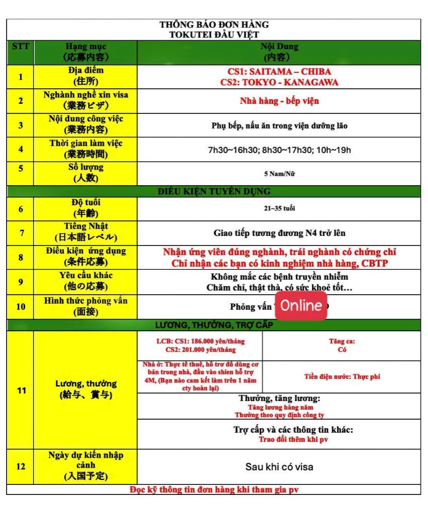 | Trình độ ngoại ngữ yêu cầu | Kaiwa N4 |