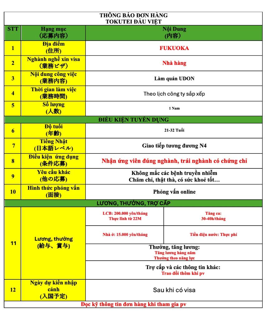 | Trình độ ngoại ngữ yêu cầu | Kaiwa N4 |