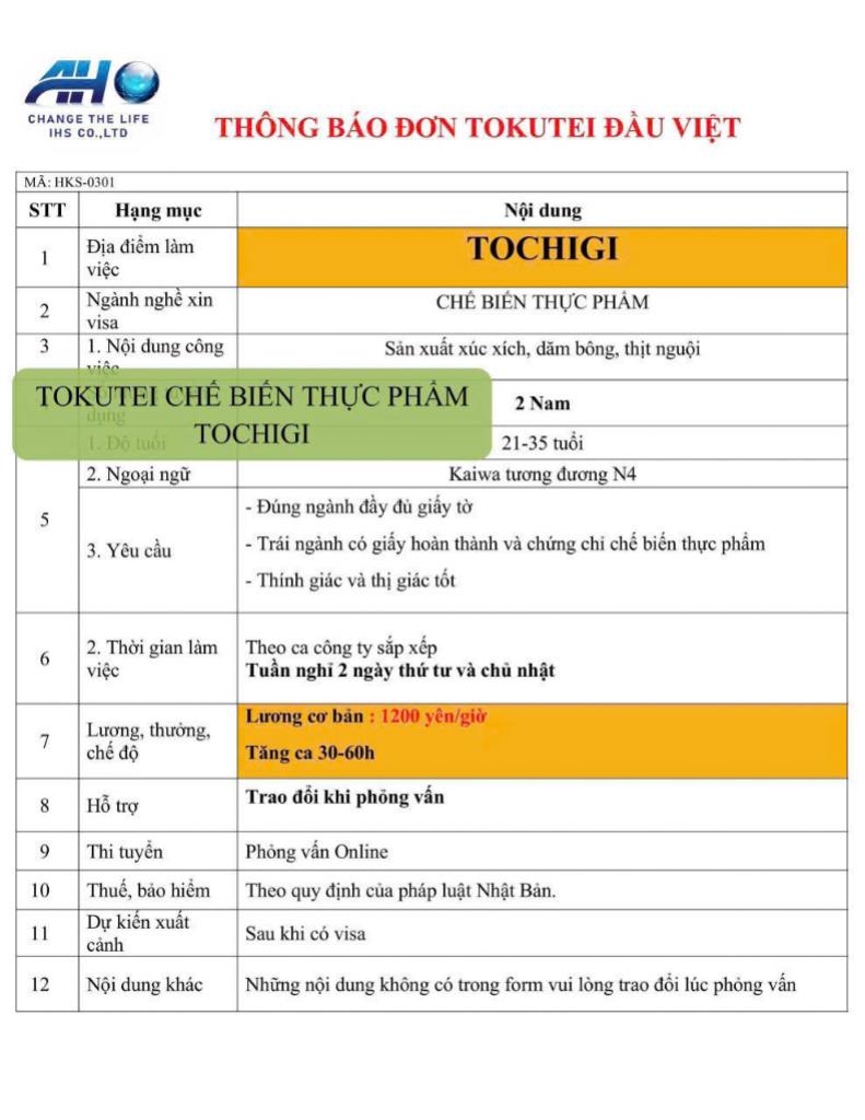 | Trình độ ngoại ngữ yêu cầu | Kaiwa N4 |