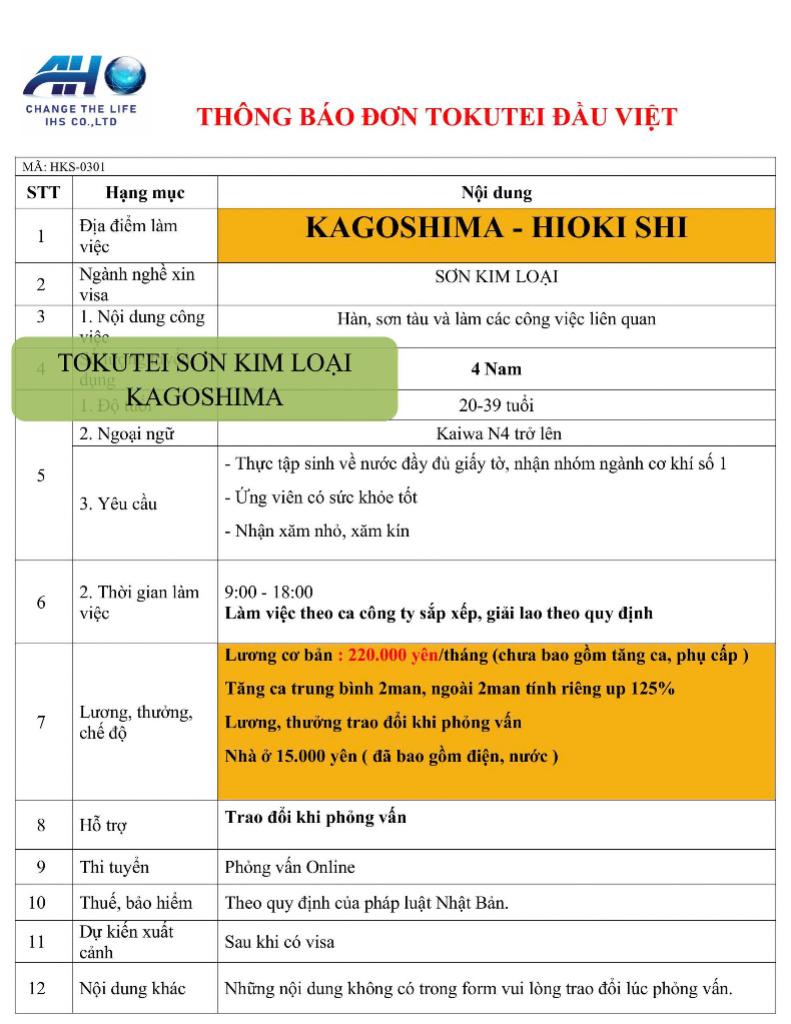 | Trình độ ngoại ngữ yêu cầu | Kaiwa N4 |