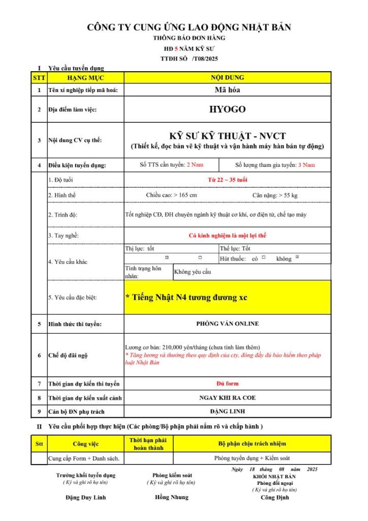 Trình độ ngoại ngữ yêu cầu | JLPT N4 |