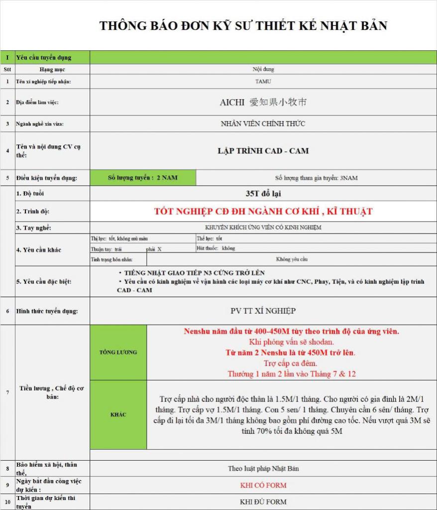 Trình độ ngoại ngữ yêu cầu | JLPT N3 |
