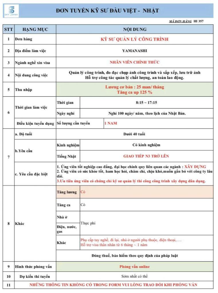 Trình độ ngoại ngữ yêu cầu | JLPT N3 |